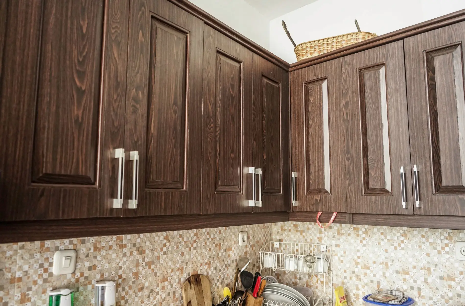 - Prefabricated cabinets with thin coatings: short lifespan, especially in busy kitchens